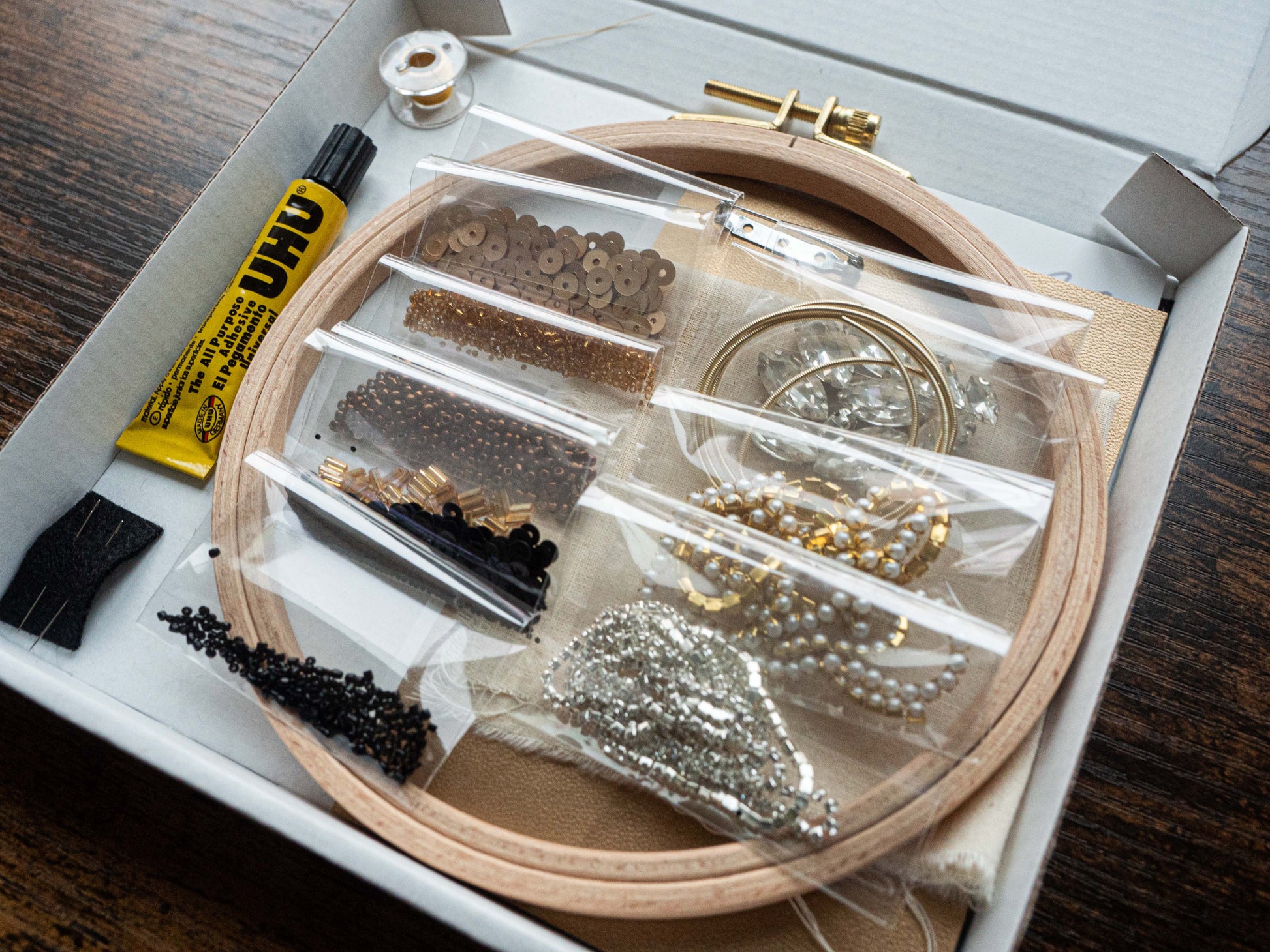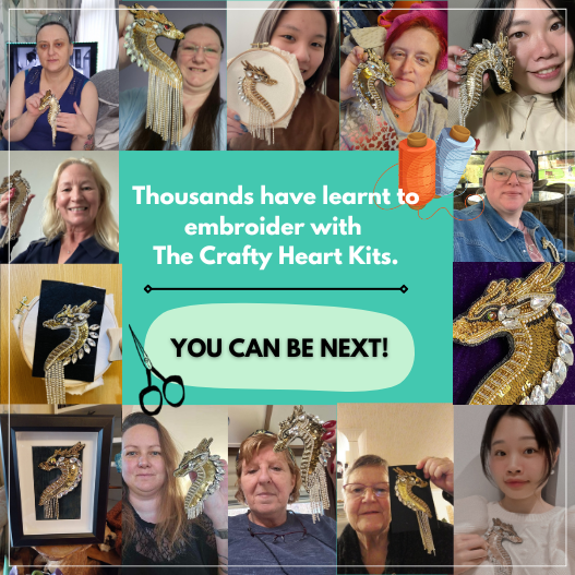 This embroidery kit contains everything you need to create your own Year of the Dragon brooch.