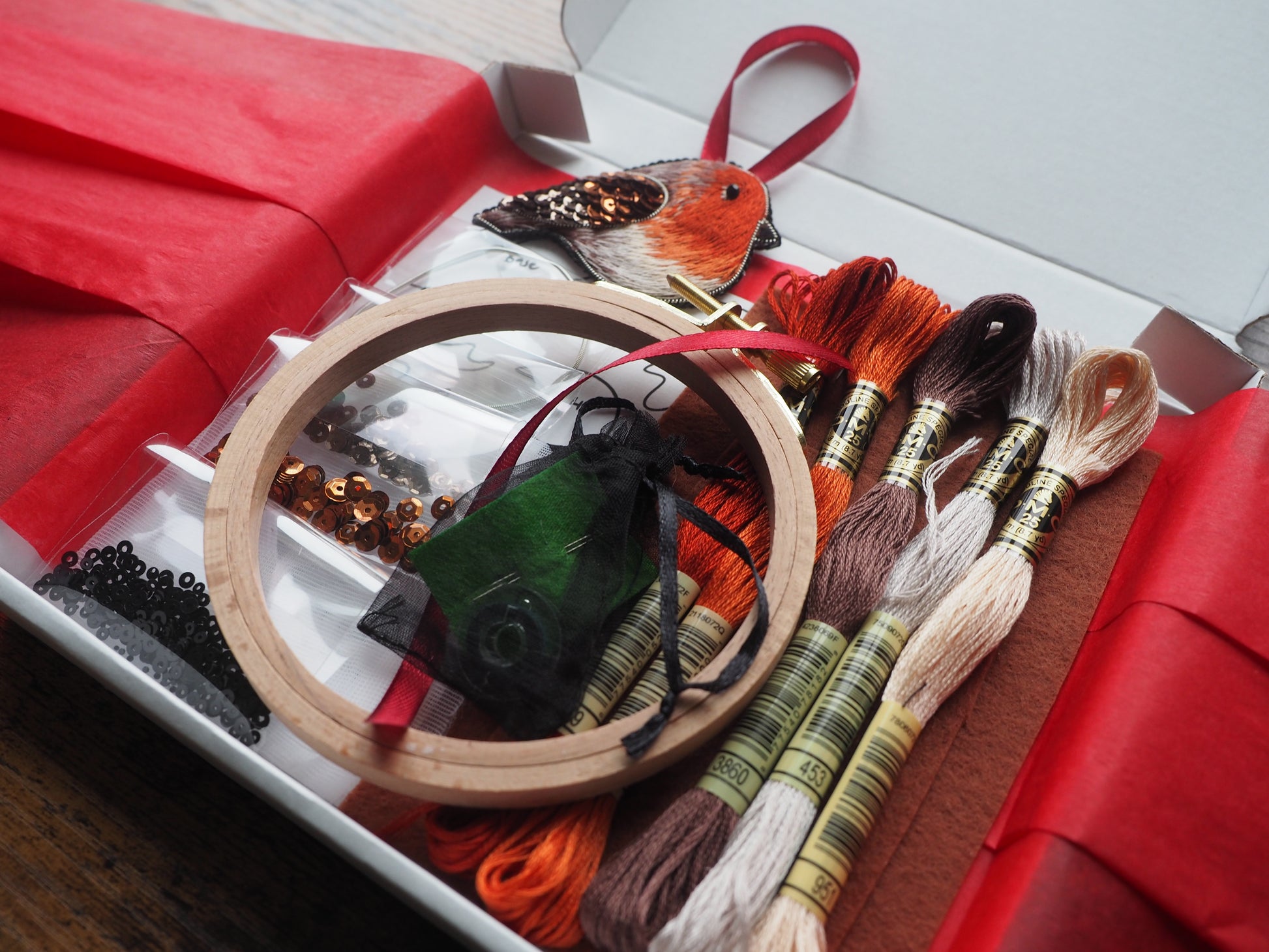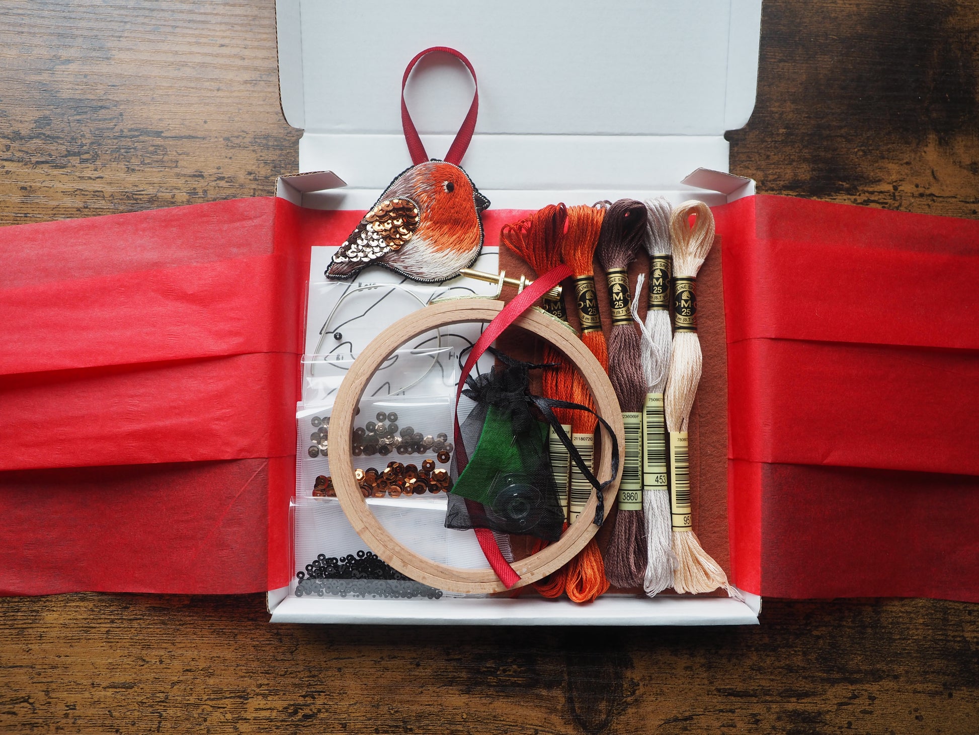 This kit contains everything you need to create this stunning Christmas Robin 🐦 using goldwork embroidery - the luxurious metallic embroidery technique.