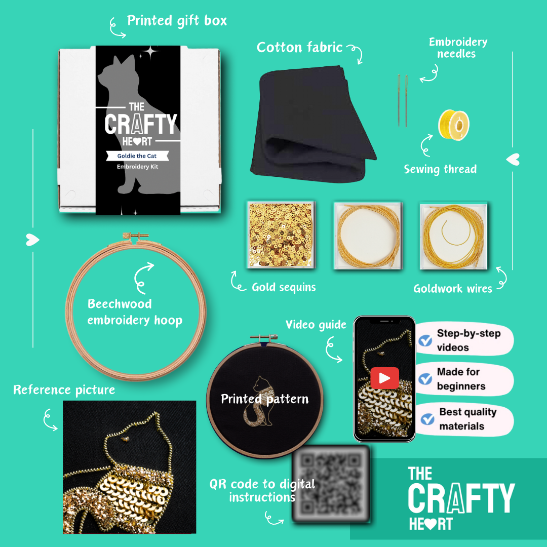 Goldie the Cat Beginners Goldwork Embroidery Kit