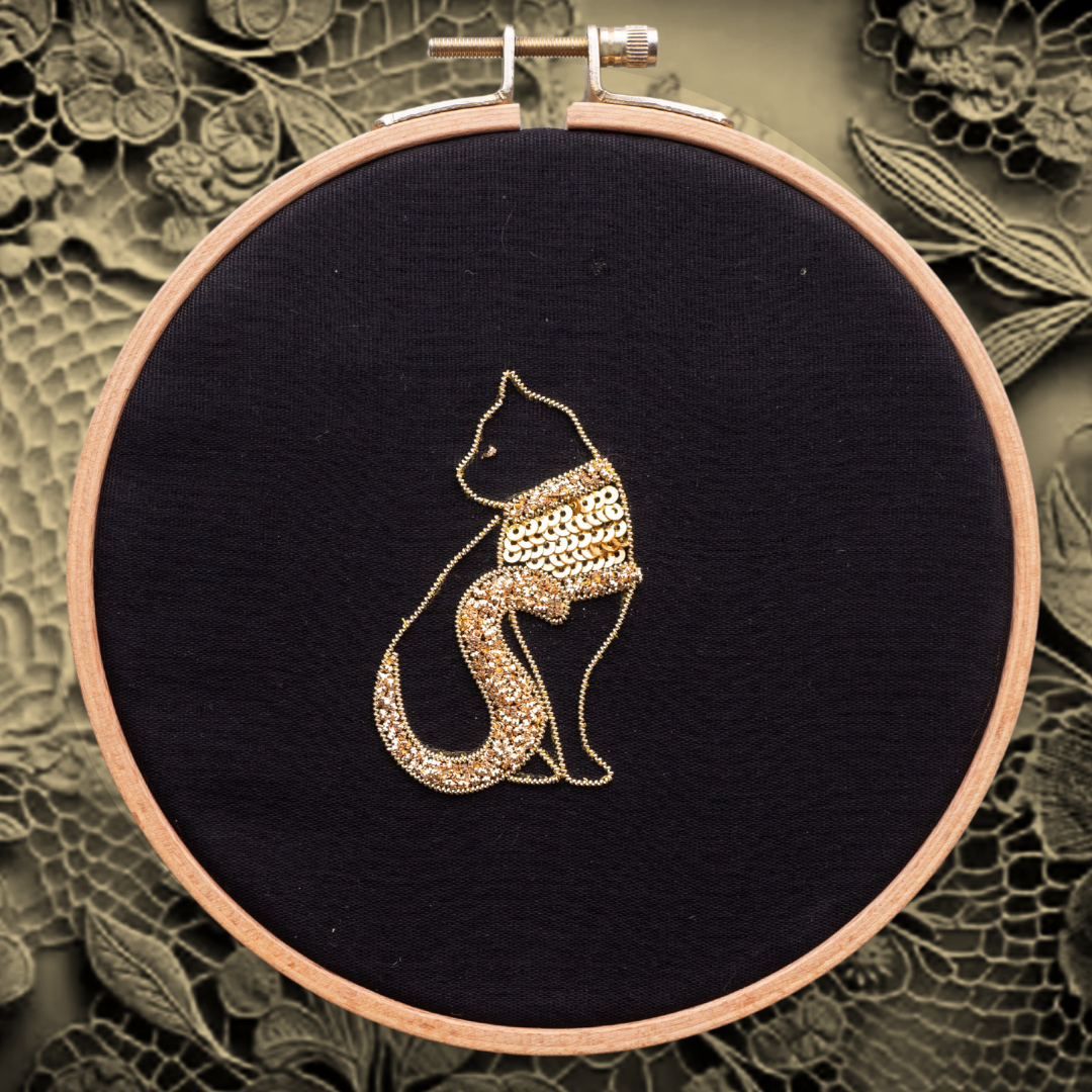 This popular pattern is the perfect for cat lovers who want to take their first step into goldwork embroidery.